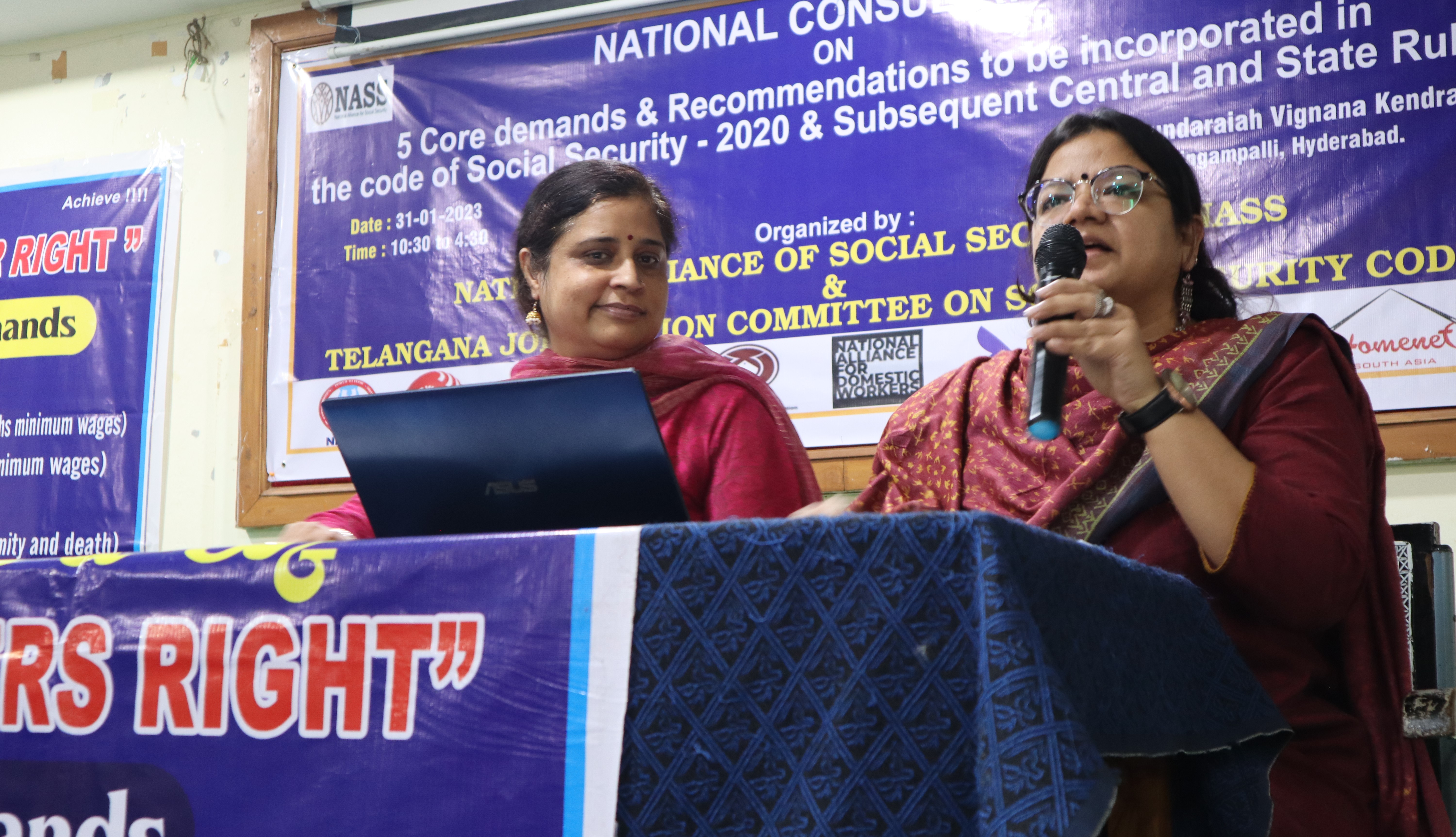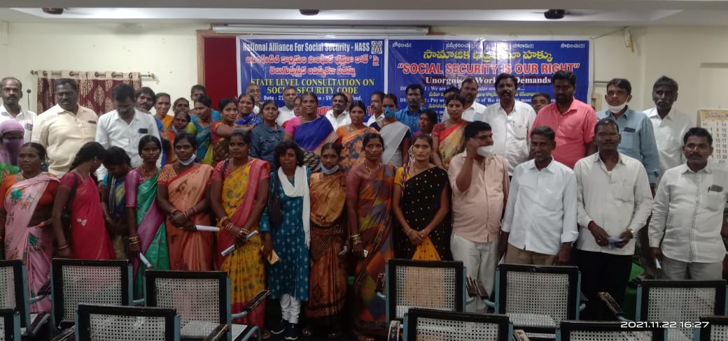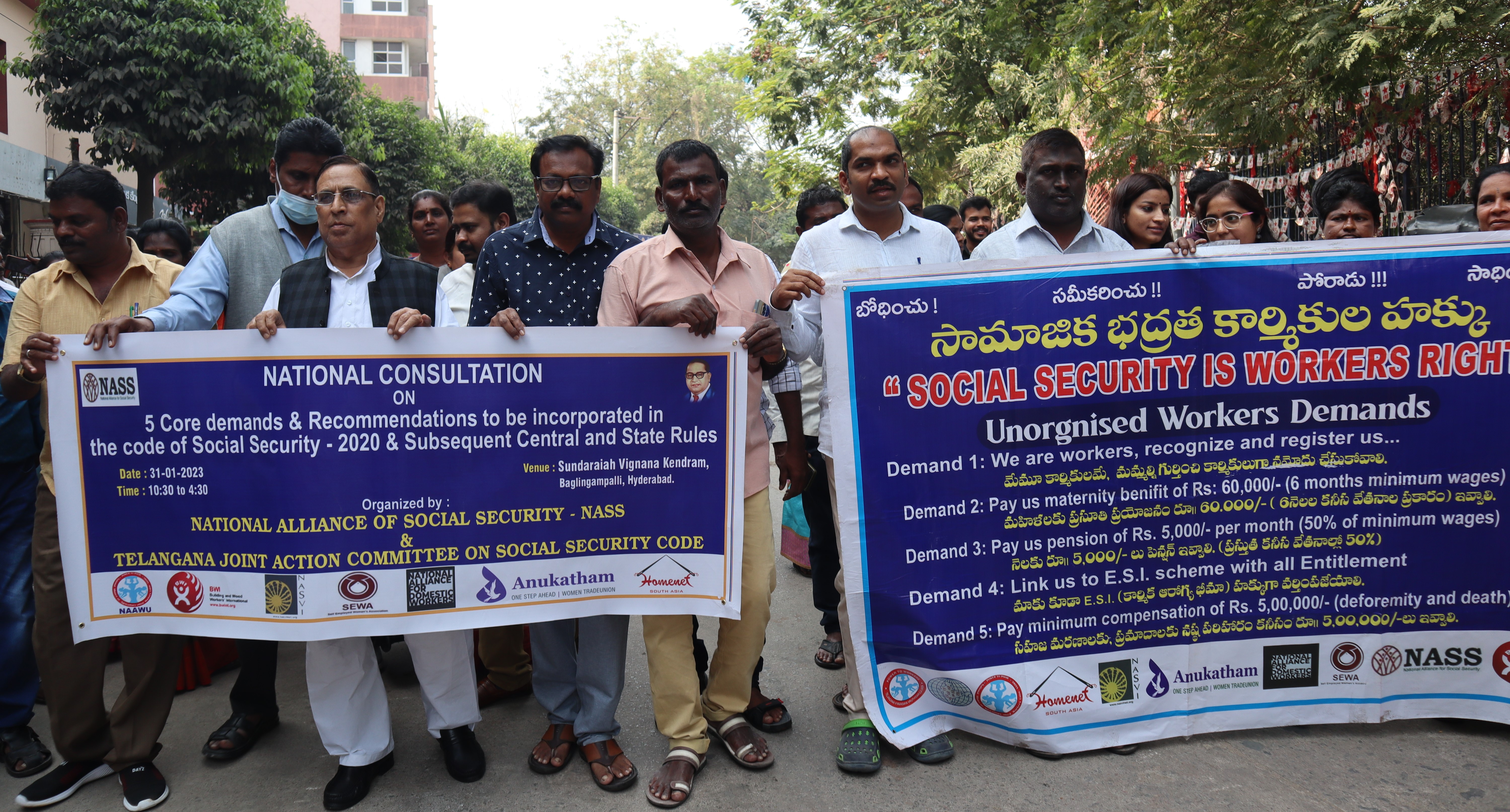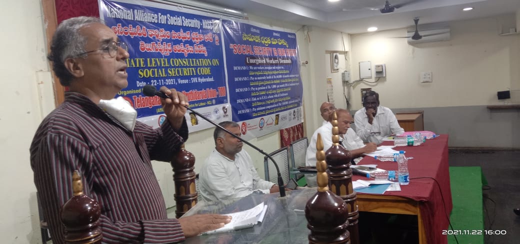 The Telangana State Level Consultation Program has organized NASS along with Telangana State Unions for sensitization of workers about the relevance of NASS 5 Demands. The informal workers' contribution and their services to the national economy are very high. NASS proposes its 5 Demands on Social Security & relevance of these demands for the development of informal workers.