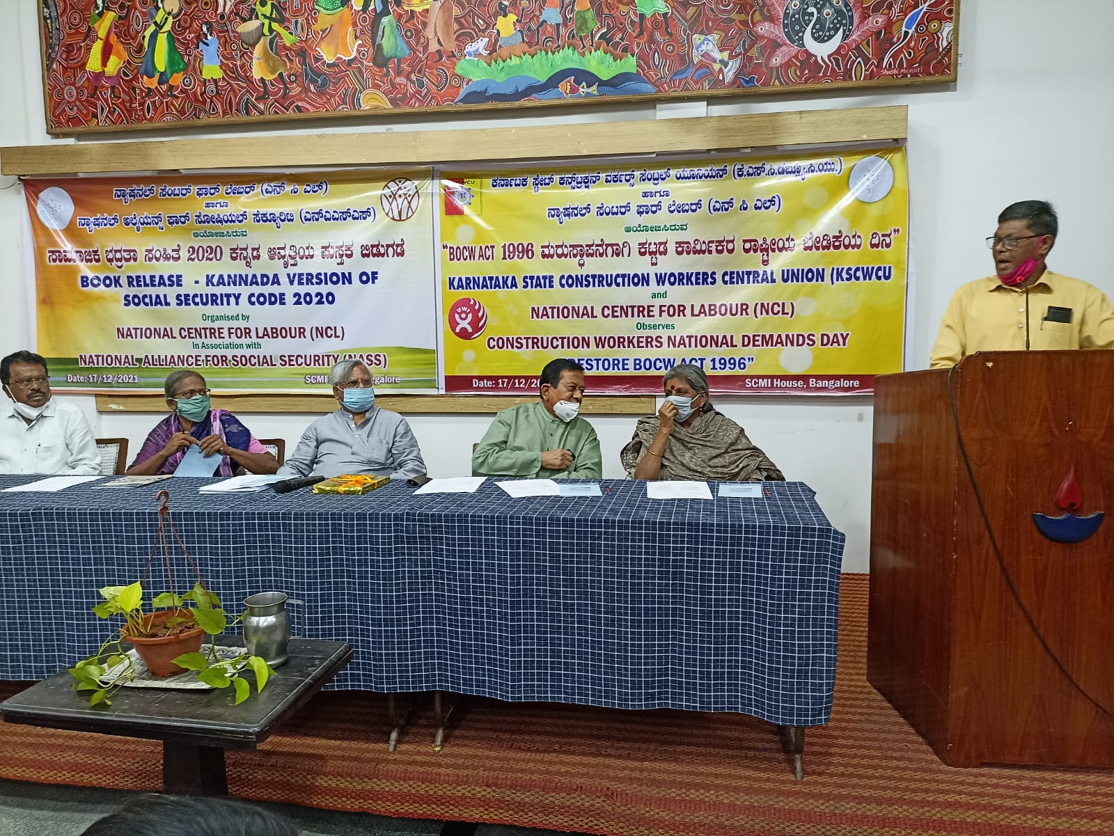 NASS along with the support of alliance members organized Social Security Workshop by releasing the Social Security Code & translated the version into Kannada. The workshop was organized to senitize workers about the relevance of Social Security Codes impact on their lives.
